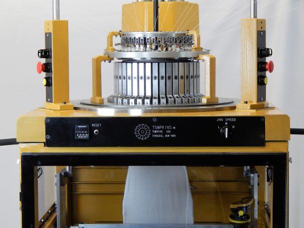The Pro-Series is Tompkins’ answer to customer demand for an increase in production and efficiency with the quality and support you have come to know from Tompkins. This Pro-Series – Jersey machine is Tompkins LARGEST machine to date and includes a number of innovative Improved Production Features (IPF) including Steel Rollers on the Takedown, 36 inch diameter fabric roll capacity PRO-Duction rolls size capacity. Additional options include an External Roll-up System, Production Monitoring Software, Servo controlled Yarn Feed System for Control, Monitoring and Adjustment of inputs and a Traverse Wind System to help you do more!